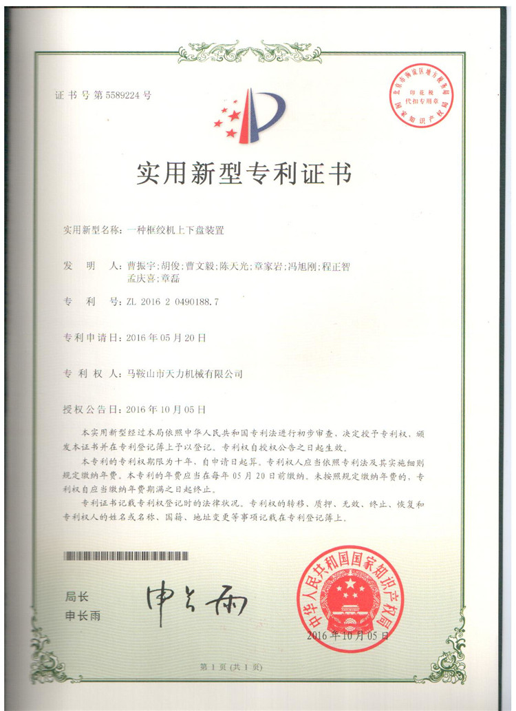 2016年實(shí)用新型專(zhuān)利證書(shū)