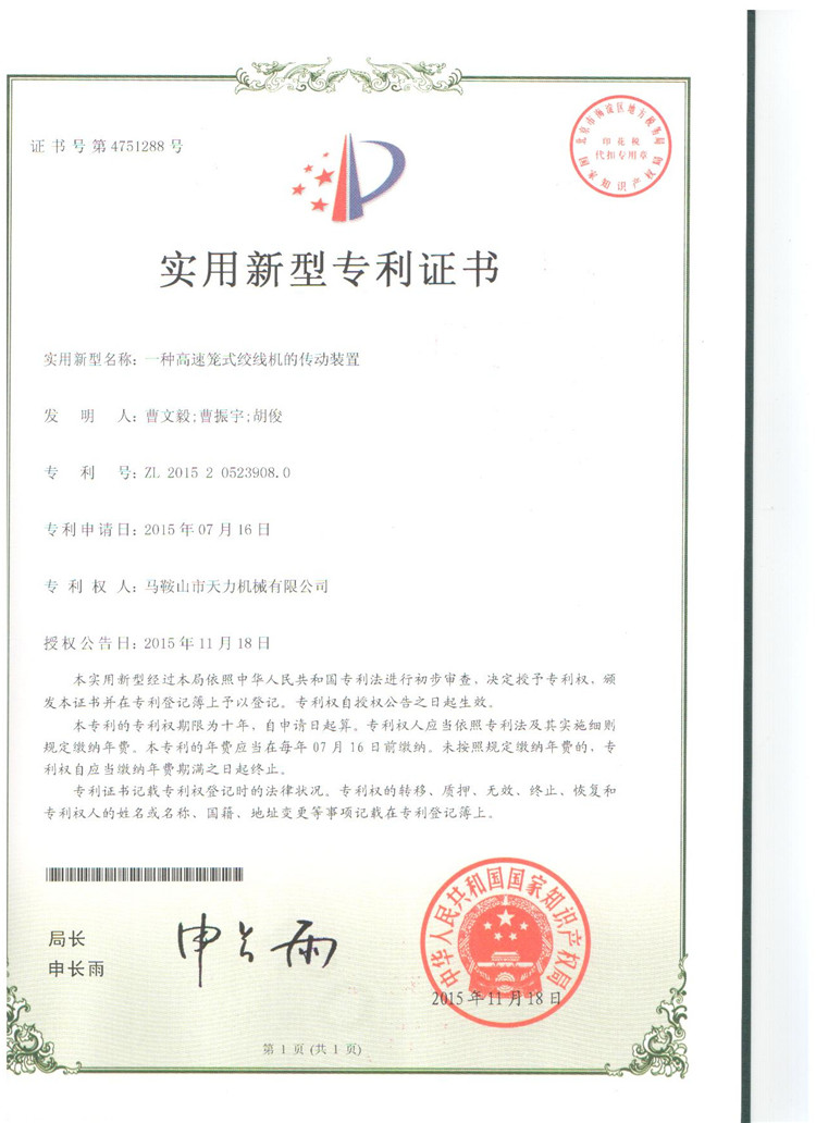 上一篇:2016年實(shí)用新型專(zhuān)利證書(shū)